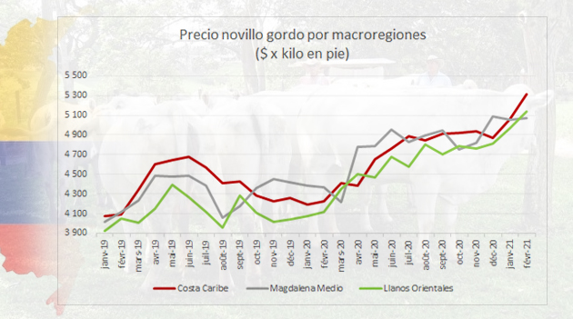 El funcionario revisó el histórico de precios desde enero de 2019 hasta febrero de 2021 comparando los promedios de las regiones más productoras: región Caribe, Magdalena medio y Llanos orientales.