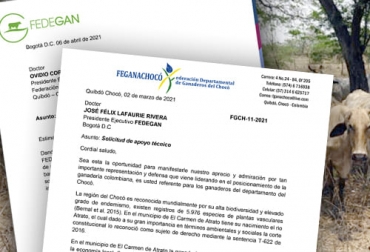 En el documento enviado a Fedegán, Cortés García explica que “en el municipio de El Carmen de Atrato, la ganadería ocupa un renglón importante en la economía local, pues según el Plan de desarrollo municipal 2020 – 2023, se registran 27.681 hectáreas dedicadas a la ganadería extensiva, la cual junto con otras acciones antrópicas han causado degradación sistemática del suelo rural”.